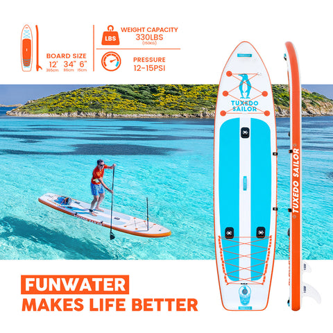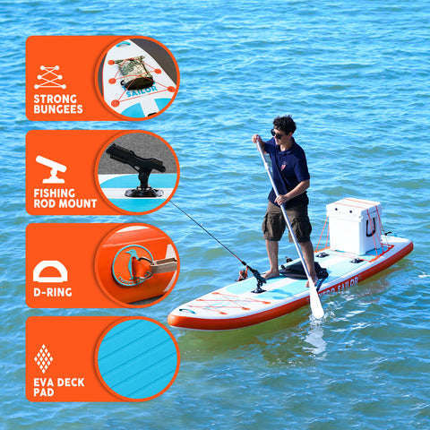 Versatile for coastal expeditions, yoga retreats, family fun days, fishing, and fitness adventures. Its 12-foot length allows easy navigation, spacious deck for yoga, stable platform for balance, and sturdy construction for fishing and fitness.