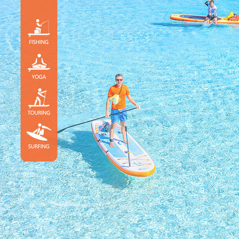 Thick paddle board ideal for various water activities like yoga, fishing, and recreational paddling. Its 6-inch thickness ensures optimal buoyancy and rigidity, making it suitable for all skill levels and exploring serene lakes or challenging coastal waters.
