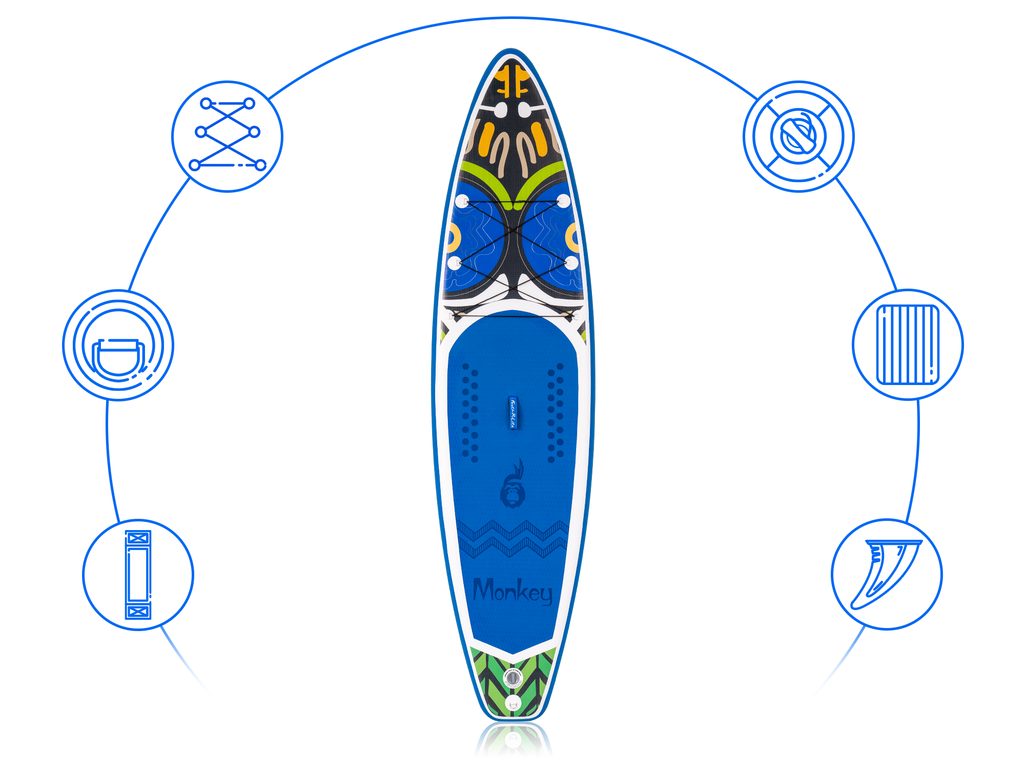 Funwater inflatable paddle boards is your first choice for water sports. This Monkey paddleboard is versatile and well-suited for various scenarios and activities on the water.