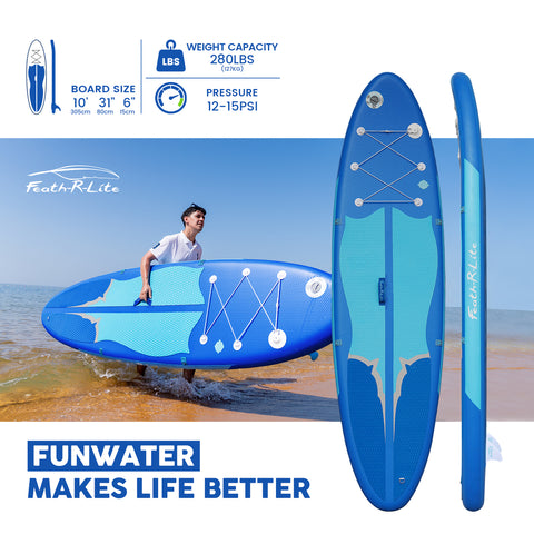 This is my second paddle board from funwater, both are feath-r-lights. They are really great value and work really well. I love that I can deflate them and store them in the winter. The material is incredibly tough and I leave them inflated during the summer under my shed with no issues.