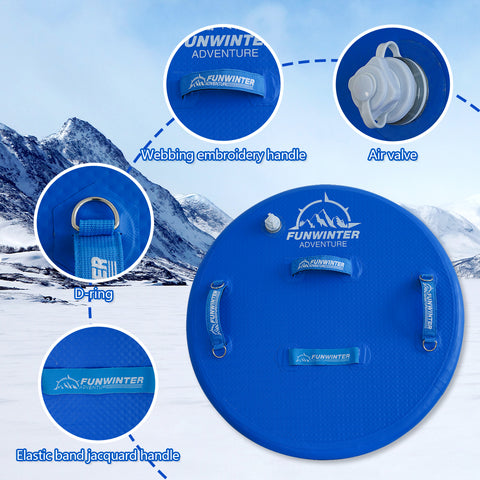 FunWater Inflatable Children's 27.5-inch Snow Tube Sled with Four Handles,Pump,Shoulder Strap and Two Pull Cords,Outdoor Collapsible Lightweight Sled for Boys and Girls.