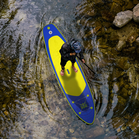 Built with military-grade PVC material and drop-stitch technology, the Funwater Violet ensures maximum durability without sacrificing portability. The extra-wide deck provides ample space for comfort and balance, while the soft, anti-slip surface offers secure footing even in choppy waters.
