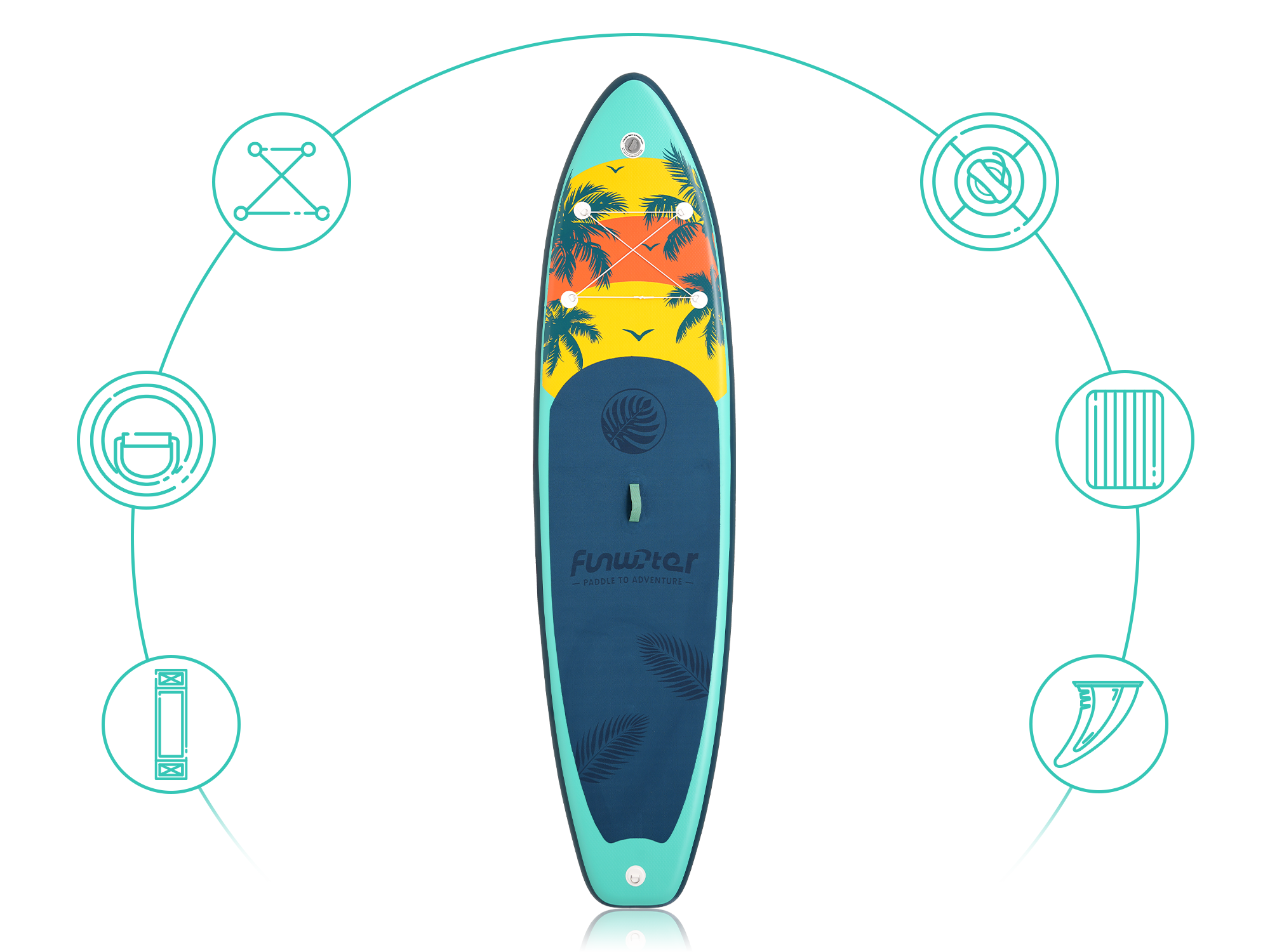 Ready to escape the ordinary? Whether you're gliding over crystal-clear lakes or cruising the open ocean, our Funwater paddleboard offers the perfect balance of performance and style for your water adventures.